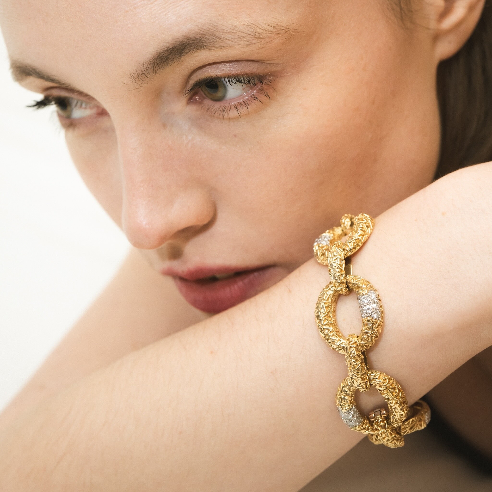 Bracelet attribué à la maison Van cleef and Arpels en or 18K et diamants. Chaque maillon est serti de 9 diamants soit un total de 5 cts environ. C’est un bracelet élégant qui illuminera votre collection de bijoux haute joaillerie et votre poignet au quotidien.
